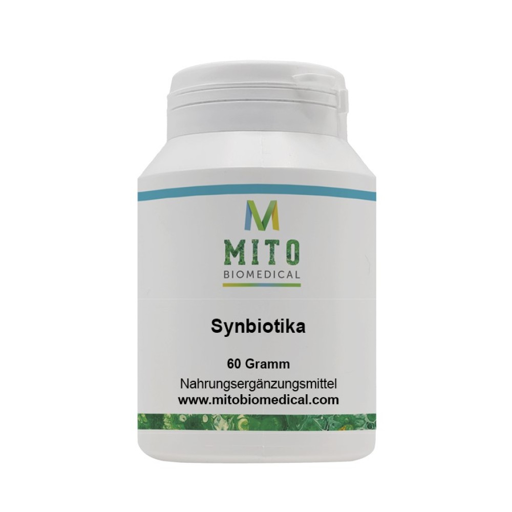 MITOsynbiotika ist eine symbiotisches Nahrungsergänzungsmittel mit einer hochdosierten Formulierung aus 13 verschiedenen Bakterien-Stämmen der Gattungen Bifidobacterium, Lactobacillus und Streptococcus. MITOsynbiotika liegt als spezielles Pulver vor, das sicherstellt, dass die enthaltenen Bakterien nach der Einnahme durch die Verdauungssäfte keinen Schaden nehmen, lebensfähig bleiben und sich im Darm ansiedeln können (galle- und magensäureresistent). Jeder Dose MITOsynbiotika ist ein Speziallöffel beigelegt, der eine korrekte Dosierung leicht ermöglicht.